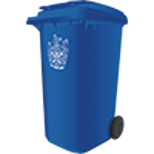 Large pieces of broken bottles and jars only can be put into your blue bin. Please put smaller shards into another jar with its lid on (or bag them and put them in your black bin) - this is to prevent them blowing out as the bin is emptied, which could be dangerous for staff.