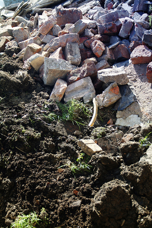 Small amounts on roots of plants are acceptable in the green bin. Soil and stones are not compostable and larger amounts can cause problems in the composting process.