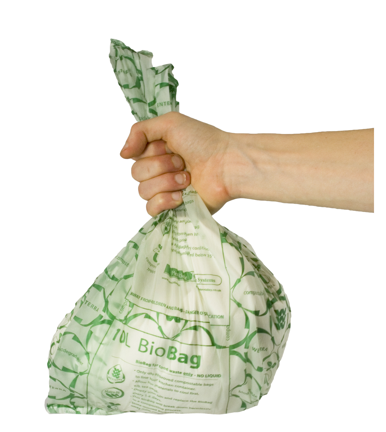 Compostable or biodegradable 'plastic' corn starch caddy liners (for example, BioBag), bio-plastic cups (or compostable paper cups, which have a layer of bio-plastic) and cutlery (for example, Vegware or Edenware), and other compostable plastic packaging (for example, Two Farmers crisp packets, Riverford salad bags and some magazine sleeves) cannot be accepted in the green bins, even if they are EN13432 certified or display the compostable seedling logo, as they do not compost quickly enough for our fast composting process.